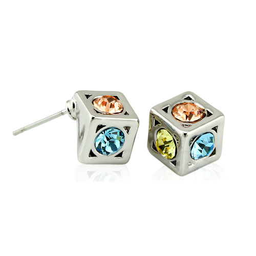 Kuution mallinen, monivärisin kivin koristeltu piikkikorvakoru.