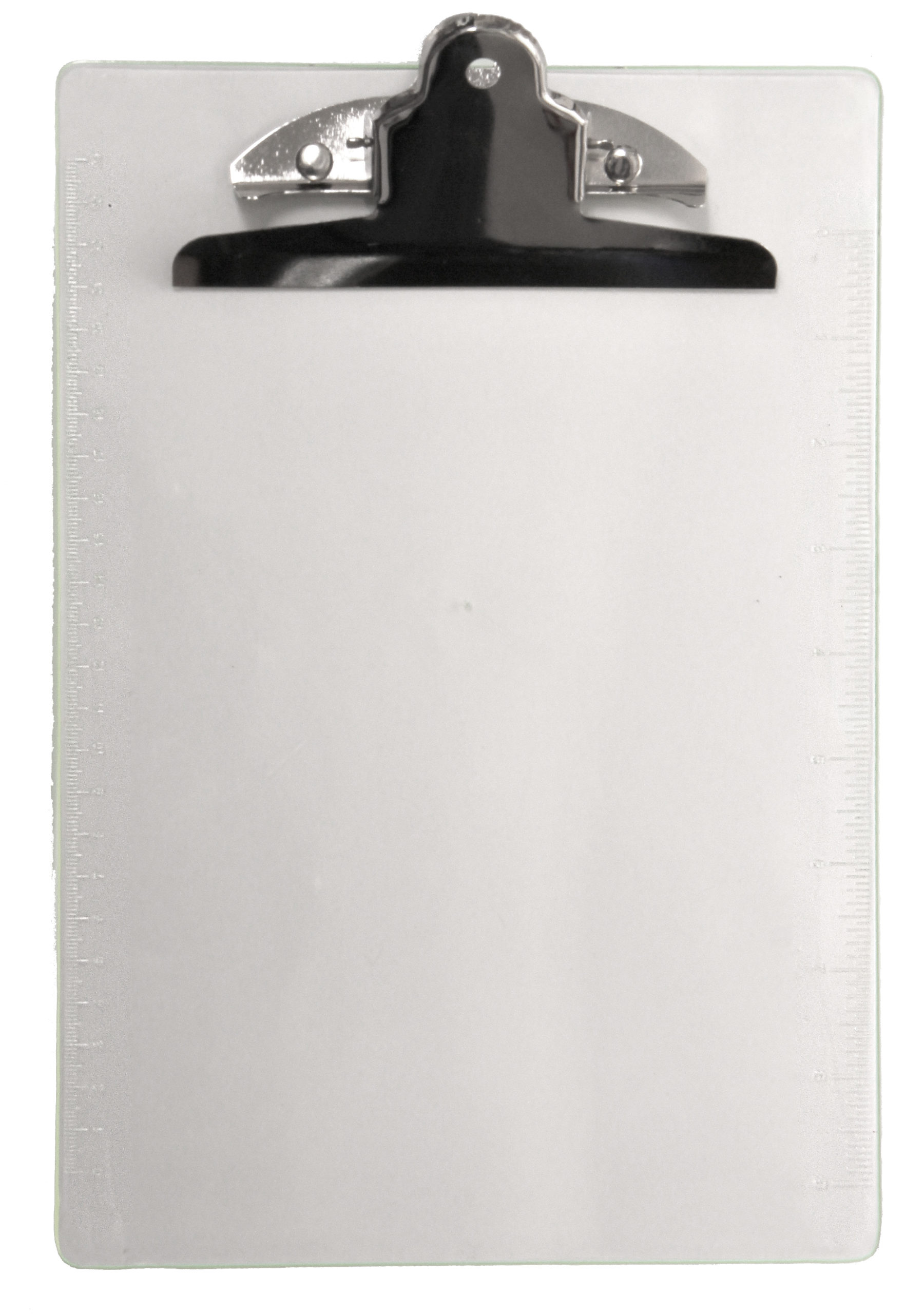 Kokonaan muovinen kirjoitusalusta on kestävä vaihtoehto: useimmat kirjoitusalustat merkkivalmistajiltakin ovat pahvipohjaisia, joissa on muovitus päällä. Tämä on läpinäkyvä kirjoitusalusta paksusta akryylistä. Tukeva puristusmekanismi pitää tärkeät asiakirjat paikoillaan. Kirjoitusalusta koko on B5, eli hieman pienempi kuin normaali A4 ja soveltuu siksi hyvin esimerkiksi A5-kokoisille papereilla (puoliksi taitettu A4). Koko alustan leveys on 19.7 cm ja korkeus 28.6 cm. Molemmissa kirjoitusalustan reunoissa on mitta-asteikko.