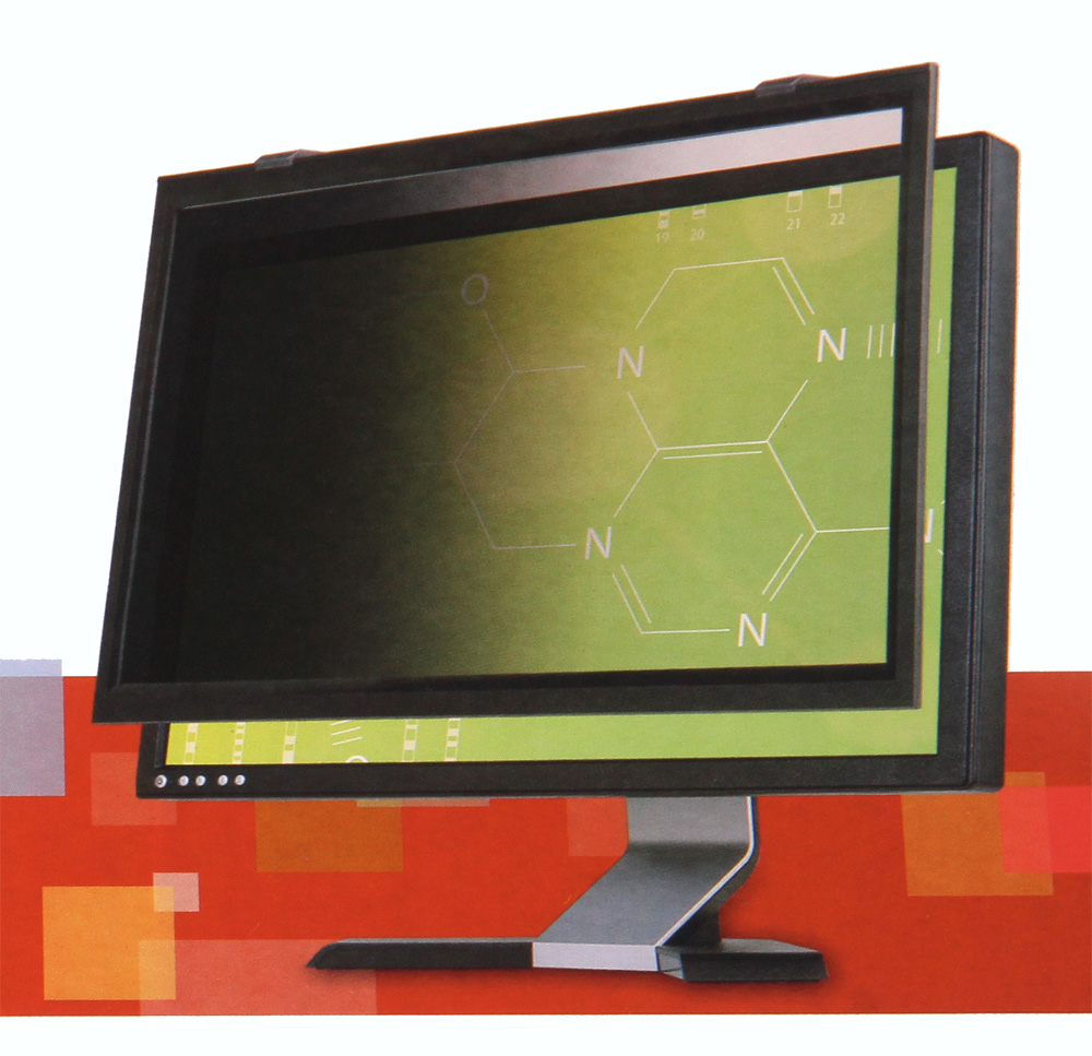 Tietoturvasuoja kapealla mustalla kehyksellä. Sopii 17" LCD näytölle. Asennusvalmis. Maadoitettuna vähentään pölyn kerääntymistä suojan pinnalle. Vain suoraan näytön edessä oleva henkilö näkee ruudun kirkkaana, sivusta katsottuna näkyy vain tyhjä, musta ruutu.