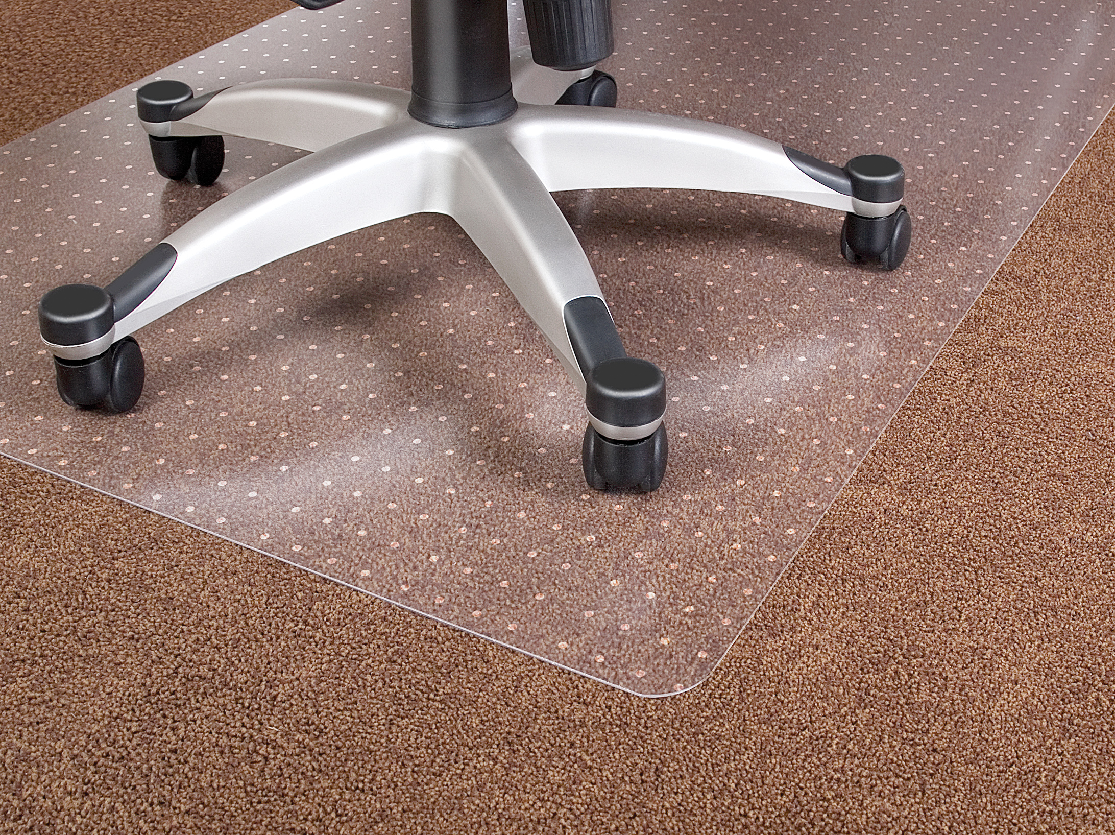 Läpinäkyvä tuolinalusmatto pehmeille pinnoille, esimerkiksi kokolattiamatoille. Pienet nystyrät maton alareunassa pitävät sen paikoillaan ja suojaavat mattopintaa. Toimistotuolien renkaat kuluttavat nopeasti kokopäiväisessä käytössä – suojaa lattiasi! Valmistettu 2.1 mm polyesteristä. Koko 120 x 150 cm. Reunat on pyöristetty.